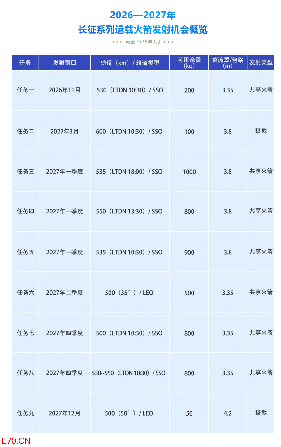 中国商火发布2026—2027年长征系列运载火箭发射机会概览中国商火发布2026—2027年长征系列运载火箭发射机会概览