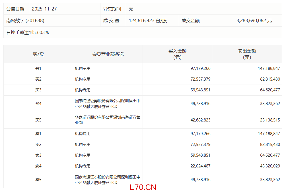 南网数字:全天换手率达53.03%,4机构合计净卖出8863.48万元南网数字:全天换手率达53.03%,4机构合计净卖出8863.48万元
