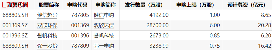 下周将有4只新股发行,预计合计募资51.56亿元下周将有4只新股发行,预计合计募资51.56亿元