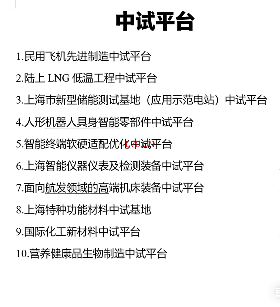10个中试平台。