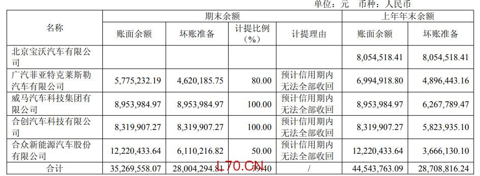 此外,随着汽车行业“淘汰赛”加剧,部分车企经营困难波及了公司的应收账款。年报显示,新泉股份对广汽菲亚特克莱斯勒、威马汽车、合创汽车、合众新能源等多家车企单项计提了坏账准备。这部分应收账款账面余额合计达3526.96万元,实际计提坏账准备合计达2800.43万元,计提理由均为“预计信用期内无法全部收回”。这反映了下游行业洗牌对供应链企业造成的直接财务冲击。