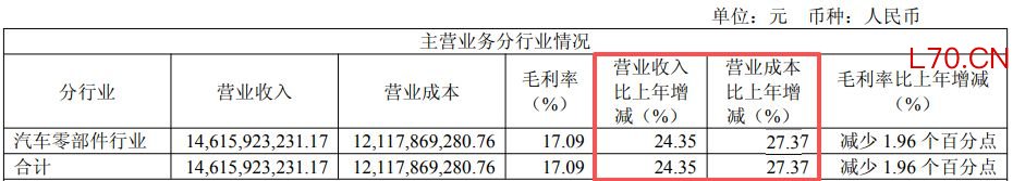尽管在报告期内取得诸多成绩,但新泉股份最终仍交出了一份“增收不增利”的答卷。除了归母净利润和扣非净利润均录得下滑外,受行业竞争、降价压力等因素影响,新泉股份2025年主营业务(汽车零部件)毛利率比上年同期减少了1.96个百分点至17.09%。