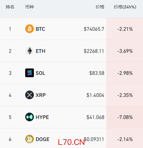 加密货币方面,主要币种集体下挫,比特币跌至7.4万美元附近,日内跌幅超2%。过去24小时,全市场超16万人爆仓。